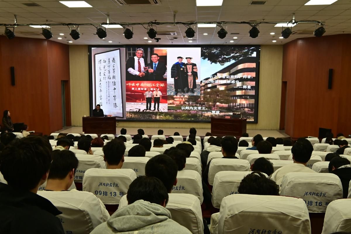 讲座尾声,聂福全院长作总结讲话。他对王胜起博士的精彩分享表示诚挚感谢,并向全体学子提出三点希望与要求:一是坚定理想信念,锚定家国情怀,将个人理想与国家发展、行业需求紧密结合,树立“强国有我”的责任担当;二是锤炼过硬本领,深耕专业知识,主动参与实践创新,在勤学善思中练就破解难题的真功夫;三是保持奋进姿态,秉持终身学习理念,勇于突破舒适区,以坚韧品格和实干精神,在青春赛道上奋力奔跑,成长为新时代机电领域的栋梁之才,用实际行动书写无悔青春篇章。