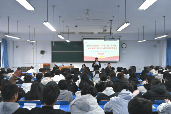 为进一步加强学院青年骨干的政治素养与综合能力,11月29日,机电学院在四号楼合二教室成功举办以“知行合一担使命,文武兼修励青马”为主题的“青马工程”培训班暨团学干部培训会。机电学院团委全体辅导员,学生会和团委各部室成员、2025级学生骨干共100余人参加。