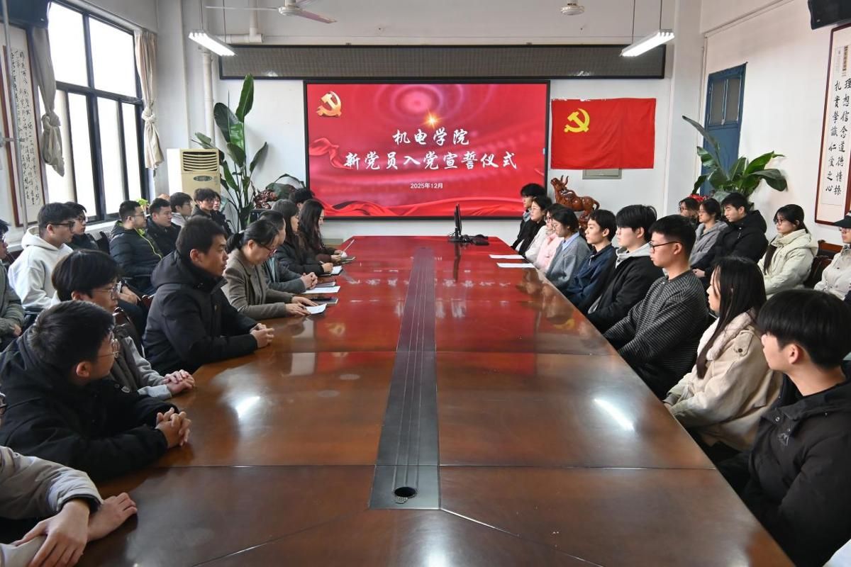 为进一步加强党性教育,强化新党员的身份认同与使命自觉,12月26日,机电学院党委在4304会议室隆重举行新党员入党宣誓仪式。学院党委书记张雅凌、党委副书记何涛、全体学生党支部书记、23名新发展党员及入党积极分子代表参加本次仪式。