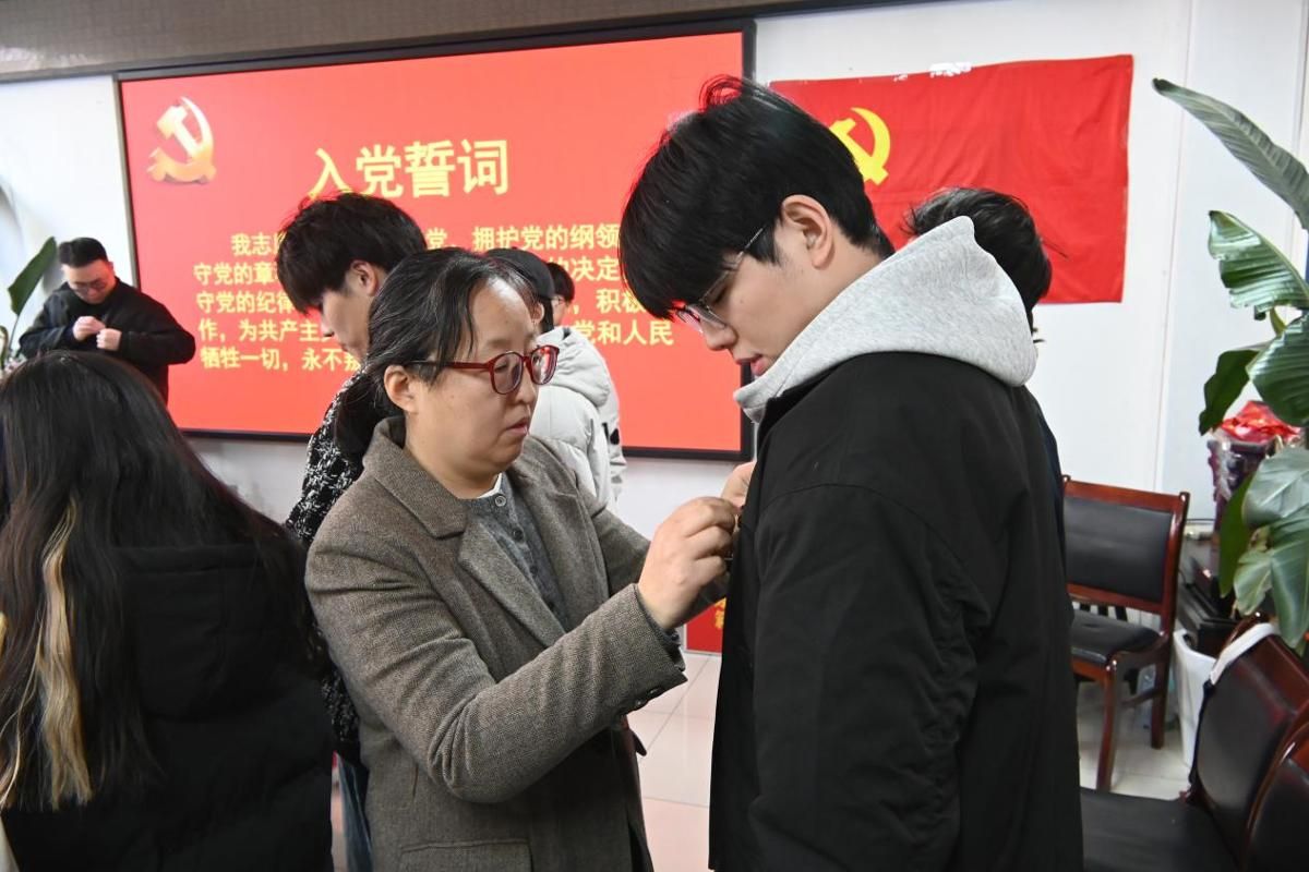 新党员代表高依宁表示,将牢记入党誓词,把个人理想融入国家发展大局,在专业学习中深耕细作,在科技创新中勇攀高峰,以实际行动践行对党的忠诚。老党员代表魏静茹分享了自身成长经历,勉励新党员们始终牢记党员身份,传承优良作风,在服务师生、奉献社会中展现先锋模范作用。