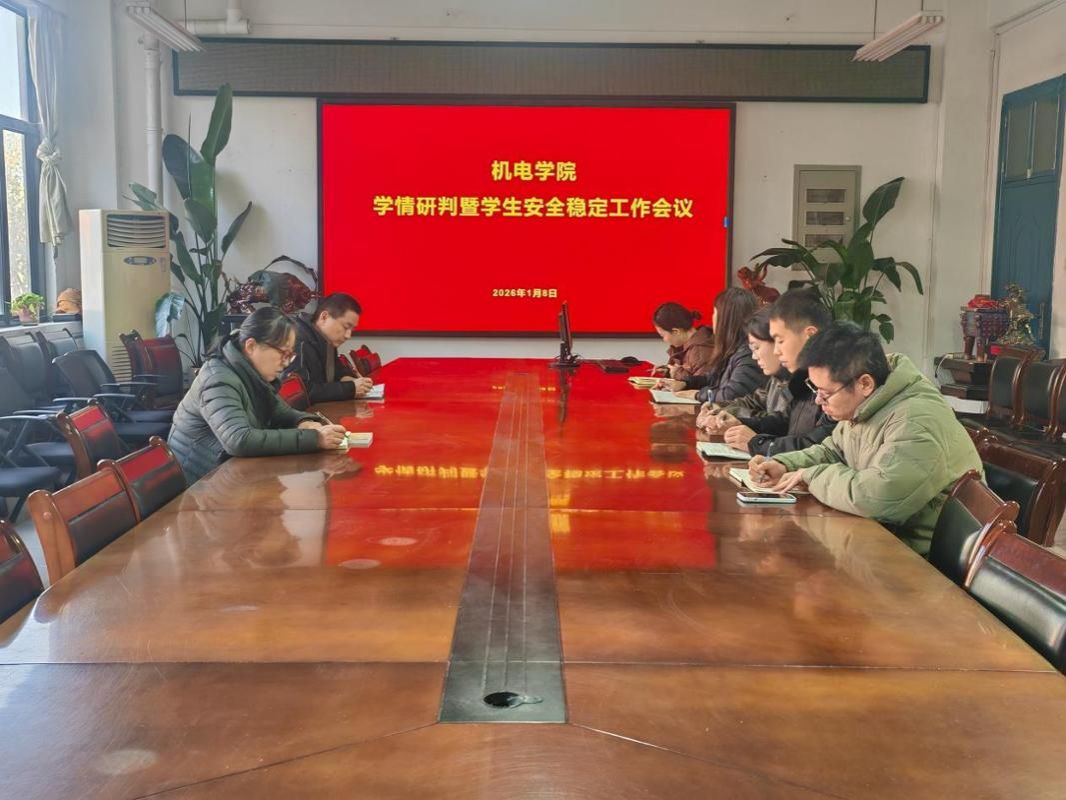 为筑牢学生人身安全防线,精准把握学生思想动态,1月8日,机电学院在4304会议室召开学情研判暨学生安全稳定工作会议,学院党委书记张雅凌,全体辅导员参加会议,会议由学院党委副书记何涛主持。