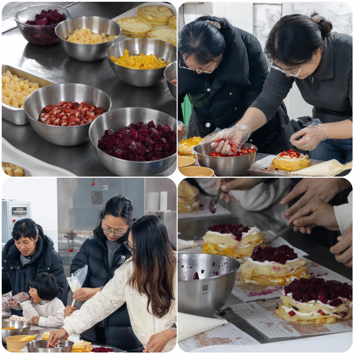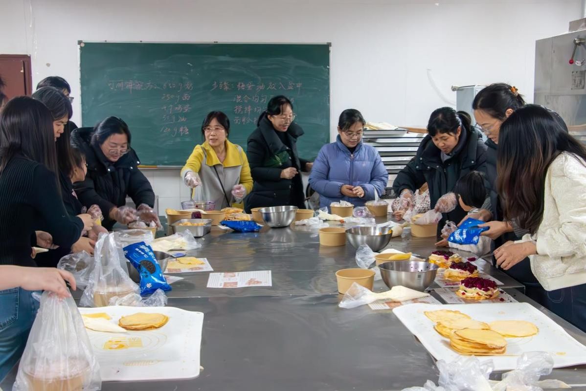 活动伊始,由专业烘焙老师为大家讲解食材配比、制作技巧与烘焙注意事项,从塑形到装饰,一步步耐心示范。接着,女教职工们纷纷动手实践,她们使用蛋糕胚、火龙果、哈密瓜、草莓、饼干碎,层层间隔叠加,很快便制成了蛋糕的初始形态,教师们的指尖流转着匠心与温情,空气中弥漫着水果与奶油的香甜气息。大家分工协作、默契配合,互相分享着制作经验与心得,将普通的食材精心组合,最终打造出造型精致、色泽诱人的蛋糕作品。活动现场气氛融洽,大家在欢声笑语中交流互动,本次烘焙活动圆满落下帷幕。