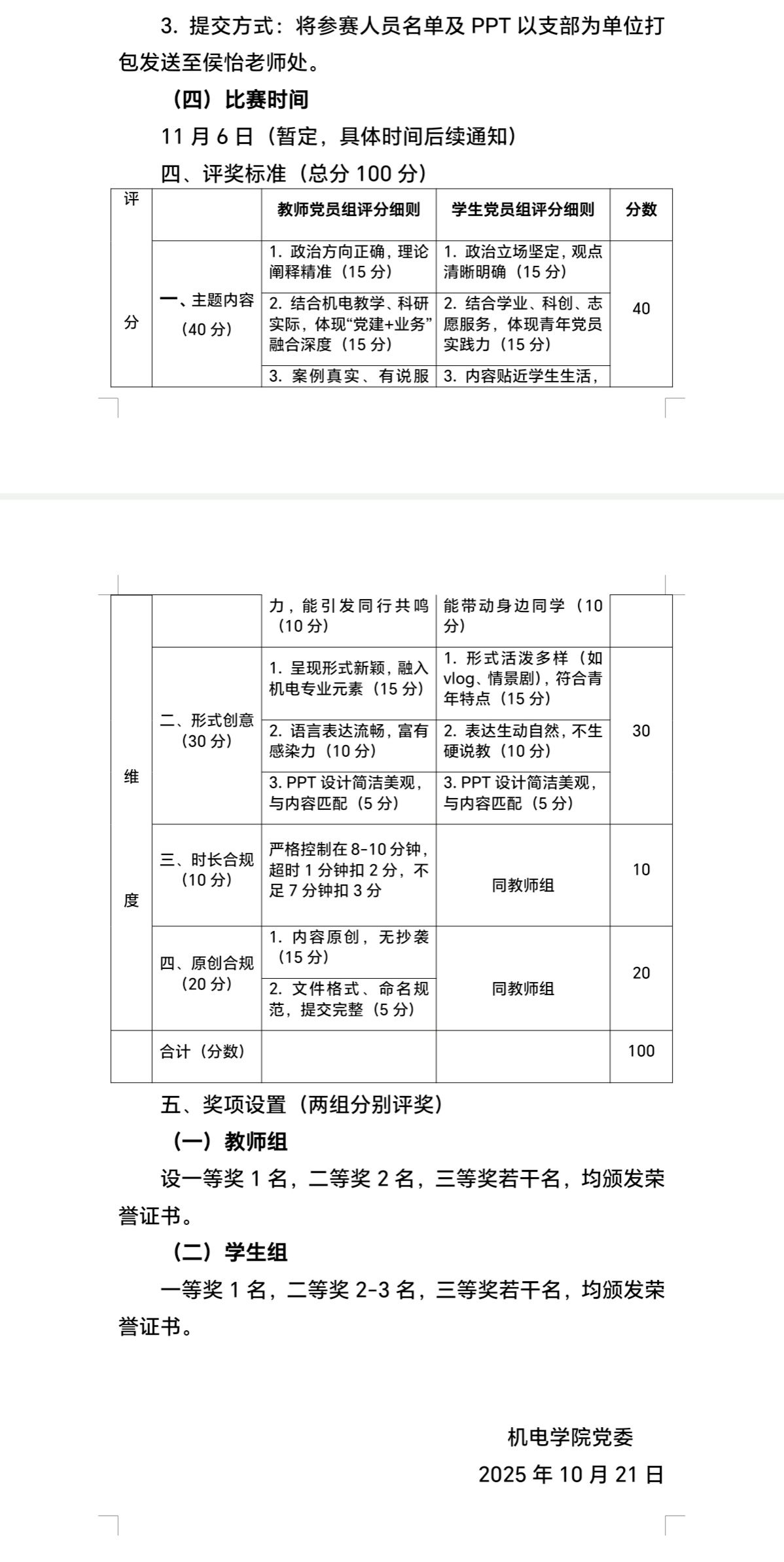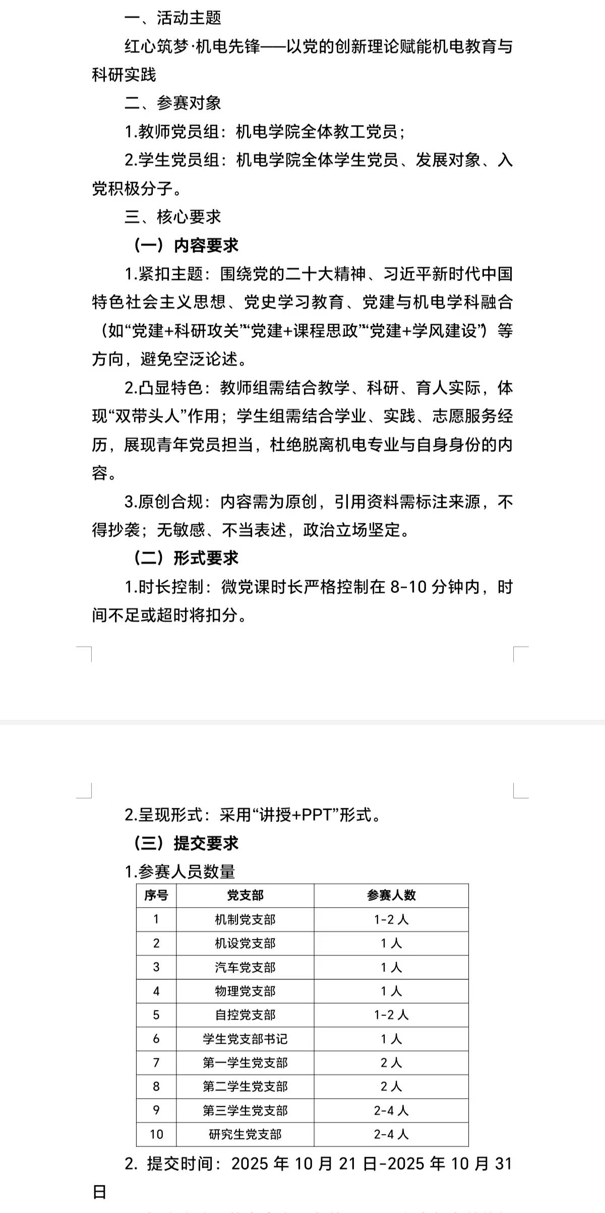 机电学院关于举办“红心筑梦·机电先锋” 微党课比赛的通知